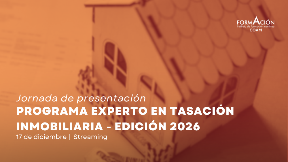 El Instituto de Formación Continua COAM colabora con Arquitasa Sociedad de Tasación, invita a todos los interesados a la Jornada de presentación del Programa Experto en Tasación Inmobiliaria – Edición 2026, un encuentro pensado para quienes desean iniciarse o especializarse en el ámbito de la valoración inmobiliaria, un sector en continuo crecimiento y con alta demanda de técnicos cualificados.