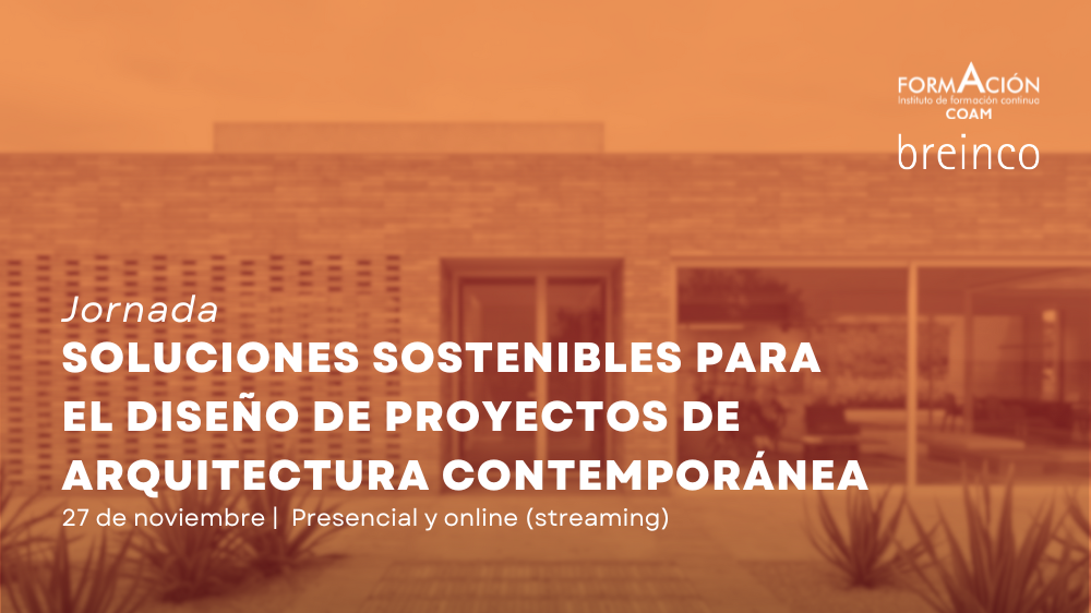 El Instituto de Formación Continua COAM, en colaboración con la empresa Breinco, organiza la jornada gratuita ‘Soluciones sostenibles para el diseño de proyectos de arquitectura contemporánea’, que se celebrará el 27 de noviembre tanto en formato presencial como en streaming. Dirigida a arquitectos, urbanistas, diseñadores y prescriptores, esta sesión propone una reflexión sobre cómo los nuevos materiales y procesos productivos pueden integrarse en el diseño arquitectónico para promover una arquitectura más sostenible, innovadora y coherente con su tiempo.